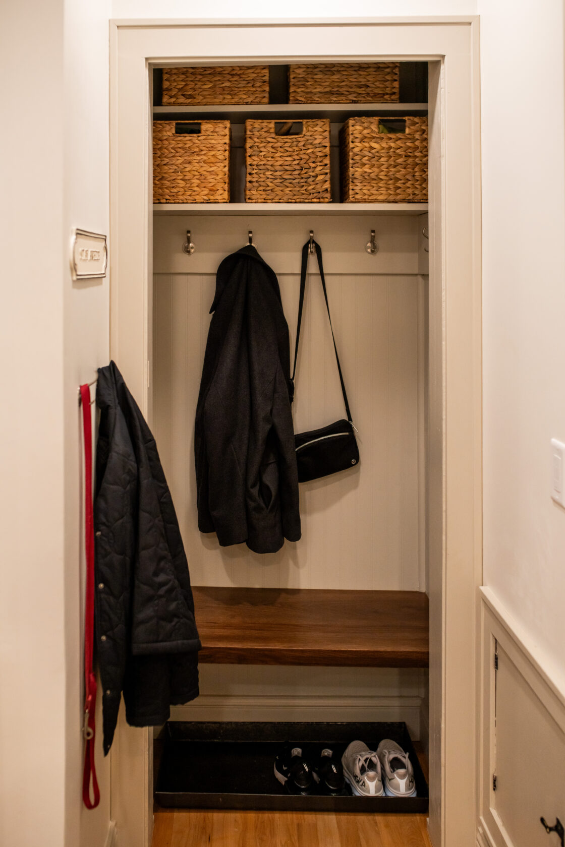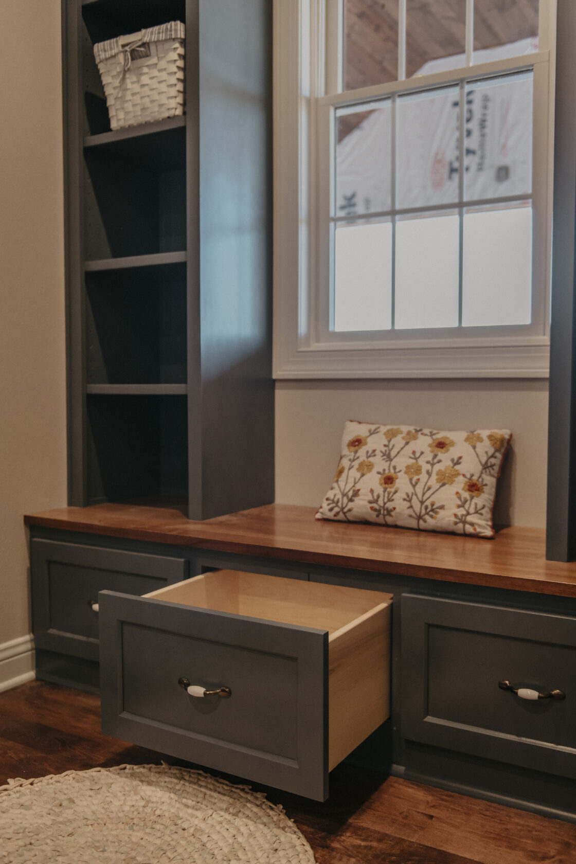 - Integrated Benches: Combine seating with storage by incorporating benches into your mudroom cabinets. A built-in bench with lift-top or pull-out drawers is an ideal spot to sit while putting on shoes.