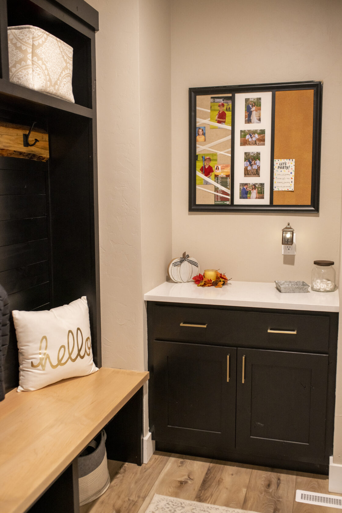- Dedicated Drop-Zone: Create a central spot for keys, mail, and charging devices. With mudroom cabinets that include a small counter and integrated outlets, your daily items stay organized and accessible.